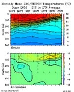 Sub Surface Temperature along the Equator for June 2002 (adapted from TOA/TRITON). Click to enlarge
