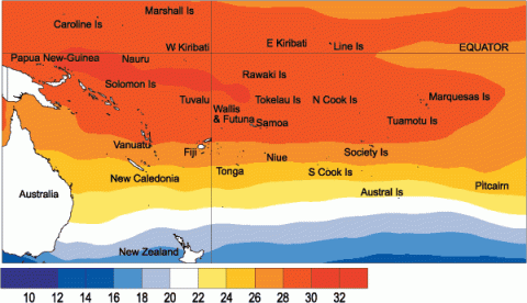 The tropical Pacific Ocean is in a neutral state (no El Niño or La Niña), but equatorial Pacific sea surface temperature (SST) anomalies remain positive. The Southern Oscillation Index (SOI) rose to near zero in June, after a strong negative excursion in May. The 3-month April – June mean SOI was –0.9. The NINO3, NINO4, and NINO3.4 SST anomalies were all between +0.6 and +0.7 °C for June, and for April – June. Equatorial Pacific subsurface temperature anomalies are currently weak, slightly positive above 100m and slightly negative beneath that. The Madden-Julian Oscillation (MJO) has been inactive for the past several weeks and outgoing longwave radiation anomalies were generally small in June, apart from continued suppressed convection over Indonesia.