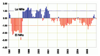 The year 2005 saw El Niño/Southern Oscillation (ENSO) conditions evolve from a weakly negative state in the first quarter of the year, to a situation with several La Niña-like features in the central equatorial Pacific in the latter part of the year (Fig. 1).