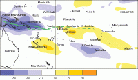 Regions of suppressed convection affected New Caledonia and Samoa. Rainfall was 50% or less of average over all of New Caledonia, and 75% or less in Samoa, the Southern Cook Islands, and parts of Viti Levu, Fiji.