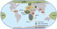 The announcement in June of the agreement between the European Union (EU) and the South Pacific Applied Geosciences Commission (SOPAC) regarding funding of the Pacific-HYCOS project represents the culmination of a long period of planning and advocacy for strengthening of the human and technical capacity of National Hydrological Services (NHSs) in Pacific Island Countries. The Pacific-HYCOS project was developed under the framework of the World Meteorological Organisation’s (WMO) World Hydrological Cycle Observing System (WHYCOS). The WHYCOS programme, which has the ultimate objective to "promote and facilitate the collection, exchange, dissemination and use of water-related information, using modern information technologies", is being implemented in the form of regional HYCOS projects as shown in Figure 1.