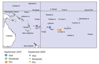 At the end of September 2007, soils were moist (at field capacity) for the time of year at both Nadi (Fiji) and Hanan(Niue), while soils were dry at Rarotonga.