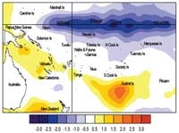 Tropical Southwest Pacific mean sea-level pressures were below average in the north Tasman Sea and to the west of New Caledonia. This pressure pattern produced more north easterlies with abundant rain into northern New Zealand, and heavy rainfall in New Caledonia and parts of northeastern Australia.