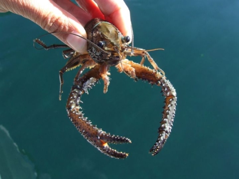 The prize: a koura or freshwater crayfish. (Kristel van Houte-Howes)