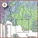 The advantage of this type of controlling factor classification is that existing maps and other data can be used to map the classes. Maps of the REC have been developed at a scale of about 1:50 000. Maps appear as ‘linear mosaics’ because classes apply to individual sections of the river network. Because the first four levels are based on attributes of the upstream catchment, main stem rivers are often classified differently to local tributaries, reflecting the source of the river rather than the adjacent landscape.