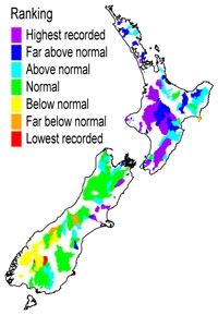 River flows over the last three months were above normal in the North Island and northern and eastern South island. The Southern Alps south of Arthur’s Pass were drier than normal.