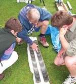 In March 2003 a barge anchored in the centre of Lake Tutira. Onboard, a drill-coring system, operated by Webster’s Drilling Company, began the first trial core. As cores were retrieved, they were ferried to the onshore science group who commenced core logging – a process that involved description, sampling, photography, and measurement of magnetic and compositional properties. Three suites of cores each penetrated the full 26 m of lake sediment, but only the third was complete, having no gaps or disturbances caused by the drilling operations. Thus we obtained a continuous record of environmental change from the present back to 7400 years ago.