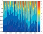 There are subtle year-to-year differences in the pattern of this winter deeper mixing that are largely weather driven (by temperature and wind). Our recent physical oceanographic studies in the Tasman Sea show that, as well as variability in weather, there is additional variability in the interior of the ocean with potentially far-reaching effects on hoki and their eventual entry into the fished population.