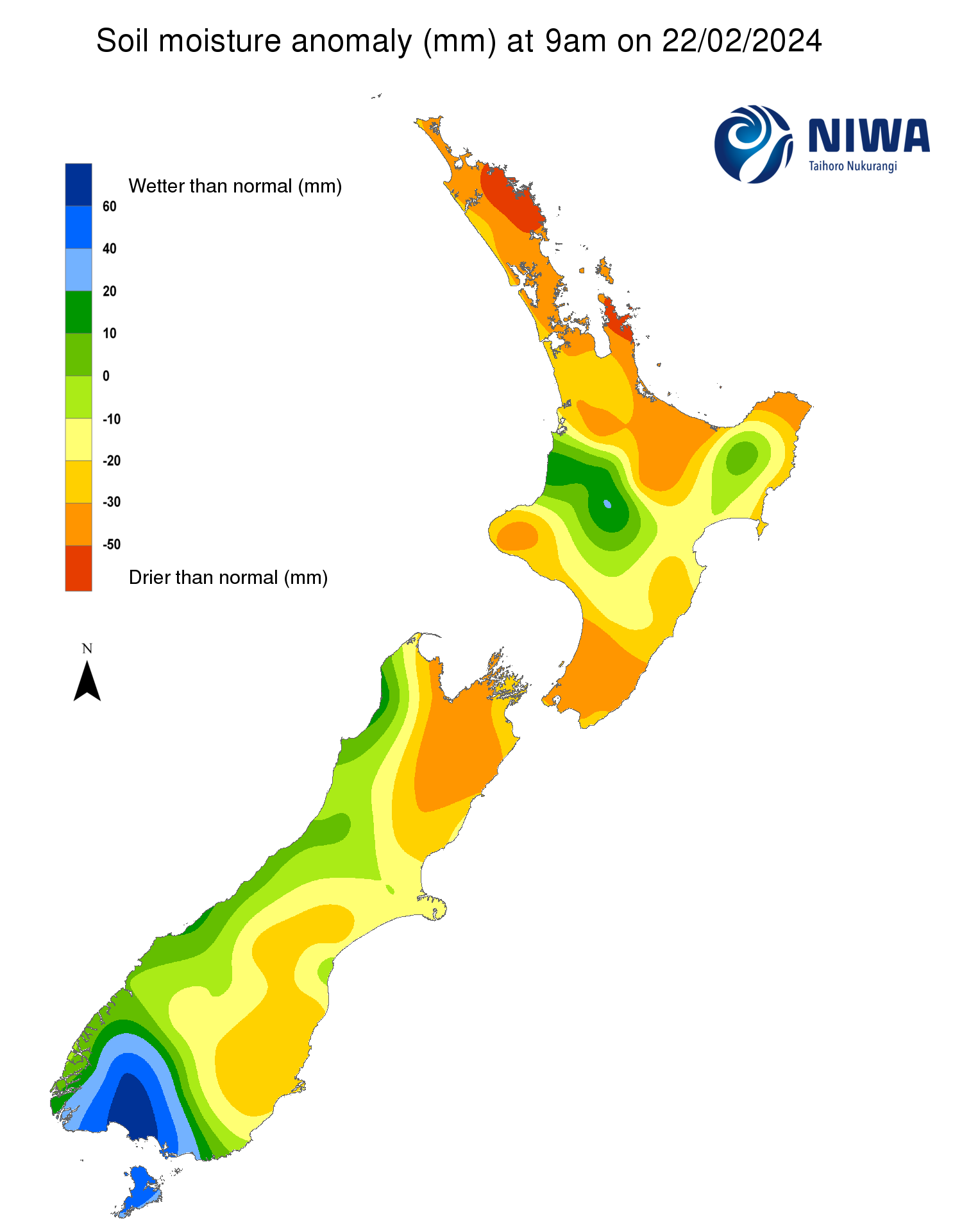 - This resulted in additional moderate to large soil moisture decreases across the entire North Island.