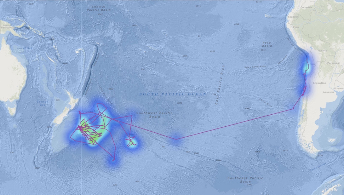 Vessel location data can be included to identify fishing overlap hotspots or opportunities for separation. It’s early days, but the research team want to compare hotspots for individual Salvin’s. Dana says they’re especially interested in seasonal flight trends, types of fisheries interacted with and the gear the fishing vessels are using. The team also wants to compare tag types.