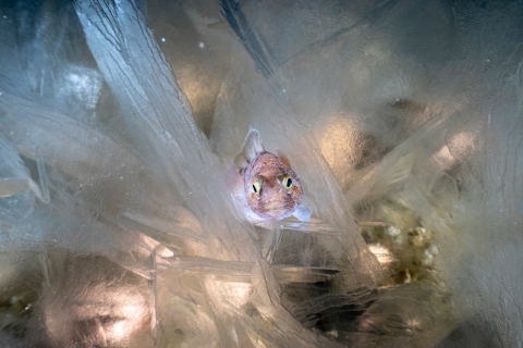 The divers also saw anchor ice formations –plate-like ice crystals of ice that seed and grow on the bottom of the sea bed – in water so cold it enables ice to form blanketing crystalline structures in a nearshore environment.