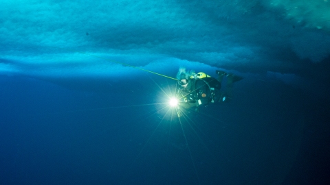 Diving under the ice in Antarctica is challenging and requires extra safety precautions such as tethers to help divers communicate with others up top. Divers also carry two air tanks and a back up regulator to make the operation safer.