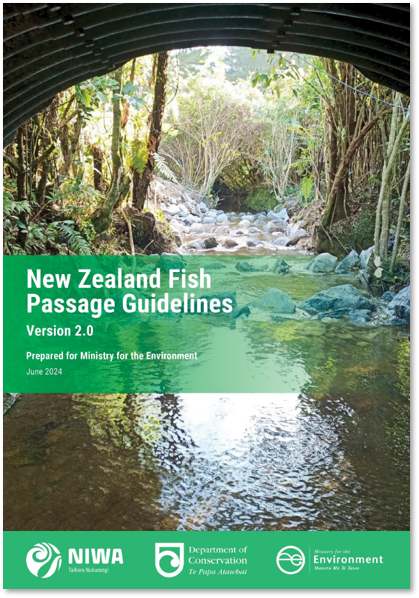 Development of the New Zealand Fish Passage Guidelines was initially funded by contributions from the Ministry for Business, Innovation and Employment (contracts C01X1002, C01X1524 and C01X1615), the Department of Conservation, Environment Canterbury, Fish and Game New Zealand, Greater Wellington Regional Council, Horizons Regional Council, Otago Regional Council, Northland Regional Council, Tasman District Council and Waikato Regional Council. The 2024 revisions to the Guidelines were funded by the Ministry for the Environment.