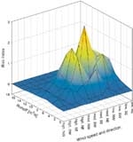 The risk index surface figure shows that in this example the highest risk is associated with medium sediment runoff combined with a medium-strength north-east wind. The risk associated with smaller sediment runoff is lower, simply because less sediment is available for deposition on the shellfish bed. The risk associated with larger sediment runoff and stronger winds is less, because this combination is less likely to occur.
