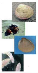 Our survey included 19 sites in 18 North Island estuaries, harbours and embayments (see map). At each site we collected samples from areas ranging from deep, soft mud to firm sand, all in the intertidal zone. By limiting the sampling to a small area within each estuary we tried to minimise the effect of other factors such as salinity and elevation on relationships between animals and sediment muddiness. We identified the species present in each sample, and determined their abundance. For each sample we also assessed the content of sand and mud.