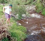 We are currently trying to devise ways to directly measure the faecal bacteria in stream sediments. In sandy areas of streambed, this is not too difficult, but sampling of rocky streambeds is not straightforward. We know that the bacteria are not present on the accessible rocks of the streambed surface, probably because sunlight, which is highly bactericidal, kills exposed cells. It is more likely that the bacteria lie deeper in the stream sediment, under the shade of surface rocks. We are also testing continuously measured turbidity as a surrogate for bacterial analysis in several ongoing studies of faecal pollution.