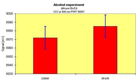 Previous meaurements show indications that the transmission of teflon might change after cleaning the diffuser with alcohol. The next graph shows the signal before and after cleaning the diffuser with alcohol.