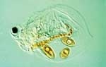 C. sowerbyi eats common zooplankton. They seem to particularly select Ceriodaphnia, a common crustacean. Other small animals seem to be eaten in proportion to their abundance. Very tiny zooplankton such as nauplii (baby crusctacea) and other rotifers may be too small and are missed by the tentacles, or perhaps are caught and digested too quickly to detect.