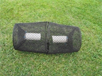 Baited cage traps (beef liver has proved the best bait) can be deployed overnight in a wide range of habitats (including macrophyte beds) to obtain catch per trap (or unit effort) information for a limited size range of koura (determined by the trap opening and mesh dimensions). We use modified minnow traps with the openings enlarged to fit a 10 cm length of 4 cm diameter PVC tubing to reduce escapement of koura attracted into the trap. The traps are attached by rope to a surface bouy. The bait is enclosed in a muslin bag hung inside the trap below the bouy line. The total cost was about $40 per trap.