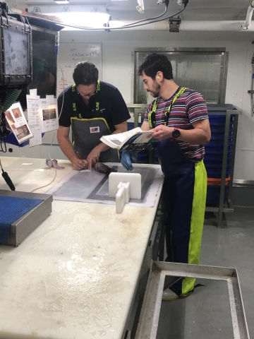 The RV Tangaroa had a couple of extra passengers on board for the biennial Chatham Rise fish survey. Georgia Third studies snapper at the University of Auckland and Tim Currie is at the University of Otago studying sand flounder. On the Tangaroa Georgia and Tim followed the NIWA scientists’ lead and worked through the fish catches to provide information for the survey.