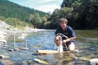 In one of the most extensive hyporheic surveys carried out anywhere in the world, we measured the levels of fine sediment on the streambed surface and at 30 cm down in the bed (that is, the hyporheic zone). In addition, we sampled interstitial invertebrates and measured various water chemistry variables. Located from East Cape to Marlborough, the 32 sites covered a wide range of geological types and land-use conditions. All sites are associated with long-term water quality, flow and benthic invertebrate datasets managed by NIWA, the Cawthron Institute in Nelson, and Landcare. It is hoped that the addition of hyporheic information to these datasets will allow us to more fully assess the consequences of sedimentation on the health of river ecosystems.