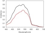 Currently the most penetrating light in Lake Taupo is in a broad blue-green band of the spectrum (475–550 nm) (see The colour of Lake Taupo waters). If algal concentrations were to double, the model shows that absorption of light will increase in the blue and green regions, resulting in a shift in dominant colour to the green (540 nm, see graph). Thus Lake Taupo would become visibly greener and slightly more turbid.