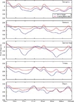 In mid-July 2002 we noticed that all our sea-level recorders down the east coast of the South Island and at the Chatham Islands were registering sea levels well below what we expected from local weather. In fact, on 17 July the level at Sumner Head dropped to 410 mm below mean sea level. This was 300 mm below what we expected from the inverted barometer effect. Inverted barometer is the theoretical response of the ocean to changing atmospheric pressure. When pressure falls, sea level rises, and when pressure rises, sea level falls. In an idealised situation the relationship is –10 mm for every hPa of pressure change. The negative sign is the reason for the name “inverted” barometer.