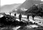 Around mid-day on 5 February 2002, a recording buoy off Baring Head, Wellington, bobbed gently in seas with waves about 1 m high. Just 15 hours later, on Waitangi Day morning, waves reached 13 m, and fluctuated between 10 and 12 m for the rest of the day. A more representative measure – the significant wave height (or highest one third of the waves) – exceeded 8 m. Following this peak, the seas declined slowly and took a full four days to return to their pre-storm condition. The culprit behind the giant seas was an intense depression, centred 800 km southeast of Wellington. This wind and wave generator moved only slowly eastward, all the while creating large waves that travelled straight to central New Zealand and into Cook Strait. As waves approached Wellington, they began to stir sand on the seabed in water depths down to 150 m. Marine organisms living in the sand were caught up in the turbulence. At Island Bay, waves began to break about 5 km offshore and turned the bay into a foam bath. As the tide rose, waves encroached farther inshore to scour unprotected sectors of the coast. Rubble and seaweed covered coastal roads.