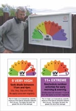 NIWA has developed a real-time UV display in consultation with the Cancer Society and SunSmart. The first prototype is currently installed at the new Molyneux Aquatic centre in Alexandra. The display incorporates a detector designed to measure the sun-burning UV from the sun and sky that strikes a horizontal surface. The instrument senses the current UV intensity, amplifies the signal, and then displays the result by moving a pointer on a scale (using the same servo technology used in model aircraft).