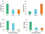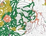 We measure genetic differences as genetic distance, which is estimated from gene frequencies using DNA or allozymes. These distances indicate how related different populations are, and provide some clues to how often populations mix between sites, at least over long timescales. In the earlier study, we collected caddisflies for genetic analysis from a range of stream sites. Using GIS, we mapped all areas of forest and scrub within 200 m of a stream edge at these sites. Using the resulting network of forest/scrub riparian strips (see example) we calculated several measures – or metrics – of connectivity among sites. We made comparisons within regions because our previous genetic work demonstrated that historical landmass changes still influence current genetic patterns for the same species occurring in different regions. Several landscape metrics showed interesting relationships with genetic distance. The graph shows how low genetic distance is associated with higher levels of connectedness. In other words, genetically similar populations tend to occur at pairs of sites that have higher connectivity. These initial results support the hypothesis that the degree of riparian connectivity may influence the permeability of the landscape to adult aquatic insects, and therefore the interchange between populations along and between stream networks.