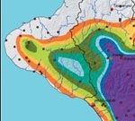 One research focus has been to estimate the likelihood of a flood event of that magnitude occuring again. How rare was the February storm? NIWA has produced maps of the average recurrence interval of the maximum amounts of rain which fell in a 12-hour, 24-hour, and 48-hour period during the storm. The maps show that, over large parts of the region, the heaviest rainfalls during the storm have recurrence intervals of more than 150 years. It was indeed an extraordinary event.