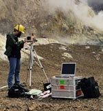 The Institute of Geological and Nuclear Sciences (GNS) regularly monitors sulphur dioxide (SO2) emissions from the White Island volcano, but measurements of other gases, such as bromine oxide (BrO), provide additional information which can be used to infer changes in the state of the volcano. The goal of our campaign was to see if BrO could be detected in the volcano’s plume and, if so, to measure the ratio of the BrO and SO2 concentrations. The only previous measurements of BrO and SO2 were made in the plume of the Soufriere Hills volcano (Montserrat) in May 2002 using an instrument similar to the one used here.