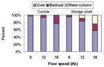 These results are important, giving us an indication of flow speeds that result in 'active' transport, and the relative importance of bedload and water column dispersal to juveniles of these species. Differences in the mode of transport (bedload versus water column) allow us to predict that wedge shells are likely to travel farther than cockles, since travelling suspended in the water column exposes them to faster moving currents than the cockles which roll along the surface of the sediment.
