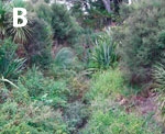 Popular perceptions can influence whether people care about restoration. People may like the idea of living in a landscape that provides wildlife habitat, but they are unlikely to change their own backyard or neighbourhood park if they believe that other people won't like it (or that house prices may be affected). Perception of human intention to care for an area may be the difference between a nature reserve and a dumping ground. From our survey, 30% of the comments about the potential for rubbish dumping concerned photo B, which was also considered untidy. Interestingly, 20% thought that photo A showed the potential for rubbish dumping, which suggests that this also gives the perception of an uncared for environment, even though it is 'tidy'.
