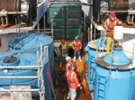 We prepared the iron solution in two 7500-litre tanks and pumped 1.35 tonnes of dissolved iron sulphate into surface waters during each infusion. To the iron solution we added a tracer, sulphur hexafluoride (SF6), that allowed us to track the movement of the fertilised patch (see Gas exchange and climate). The phytoplankton responded rapidly to the iron addition, with an increase in the photosynthetic ability of the phytoplankton in the iron patch that was maintained throughout the experiment. However, after four iron infusions over 15 days, chlorophyll-a, the phytoplankton pigment used to measure total phytoplankton, had only doubled, and we saw little evidence of enhanced CO2 uptake or increased production of DMS and other trace gases.