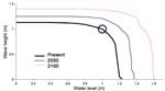 Recently, we conducted a joint probability analysis for the Wellington Harbour frontage on behalf of Wellington City Council as part of a wider study assessing the potential effects of climate change on weather-related hazards. We calculated the joint probabilities of water levels and wave heights both for present-day conditions and for the higher sea level and larger wave heights expected to occur in 2050 and 2100. In the graph below, each line shows the various combinations of water-level and wave conditions that have the same joint probability of occurring or exceeding once every 100 years on average. While these different combinations all have the same joint probability of occurring, it is often the case that a particular combination will cause the greatest damage, for example to a seawall. In the graph this combination (for present-day conditions) is indicated by the circle. At this stage we can’t easily calculate error estimates for our joint probability analyses; this remains an important task for the future.