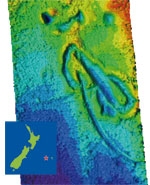 During the inaugural voyage of Ocean Survey 20/20 in August, NIWA’s multibeam acoustic survey equipment recorded evidence of icebergs in our waters in the more distant past. The scour marks detected on the seabed on the Chatham Rise were probably made during the last ice age, about 20 000 years ago, according to NIWA marine geologist Scott Nodder. The marks suggest an iceberg measuring between 2 and 5 km long – similar or slightly larger than the biggest berg sighted last year.