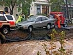 Parking beside the River Leith proved precarious as floods tore through Dunedin in 2006. (Photo: NIWA)