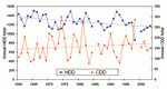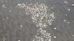 In Japan, rivers swollen by monsoon rains deliver terrestrial sediments to coastal waters, and estuarine tidal flats are damaged by the muddy deposits that result. In 2002 and 2006, Professor Tamaki documented catastrophic events where mud deposits up to 30 cm thick smothered whole populations of bivalves before they could be harvested. Drew timed his 2007 visit to coincide with the monsoon season and was able to sample a significant deposition event on the Shirakawa tidal flat (Ariake Sound, Kyushu) in mid July. After the peak rains, a homogenous layer of mud more than 10 cm thick extended for almost 2 km2. The impacts of terrestrial sediment deposition were clearly evident for the sandflat’s three dominant bivalve species.