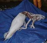 Te Papa’s now famous colossal squid has been joined by another frozen/thawed companion – a giant squid, netted by Tangaroa.
