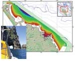 As part of the government’s Ocean Survey 20/20 programme, NIWA contributed in October and November to the largest coastal survey of its kind to take place in New Zealand waters. Previous Ocean Survey 20/20 projects have looked at deepsea environments; now attention has turned to shallow coastal waters. This project focuses specifically on the Bay of Islands, and an area from North Cape to Poor Knights Islands was surveyed to a depth of 200 metres, giving a total survey area of 3530 square kilometres.